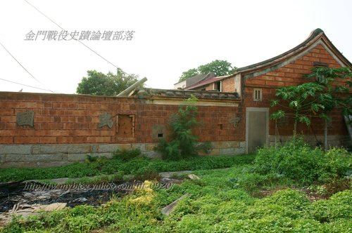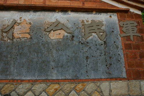 另一處民宅典型的反共標語: ''軍民合作 反共抗俄'' .亦是水泥浮雕.有些字體脫落..