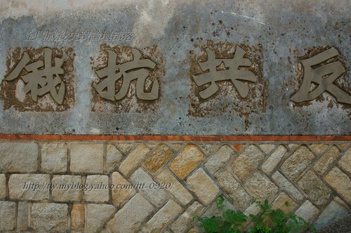 何厝與斗門隔路而相對.以前此地也駐軍甚多..斗門之前已記錄過目前僅剩兩處- 請見斗門反共標語 ..何厝保留較多也完整.茲紀錄如下..